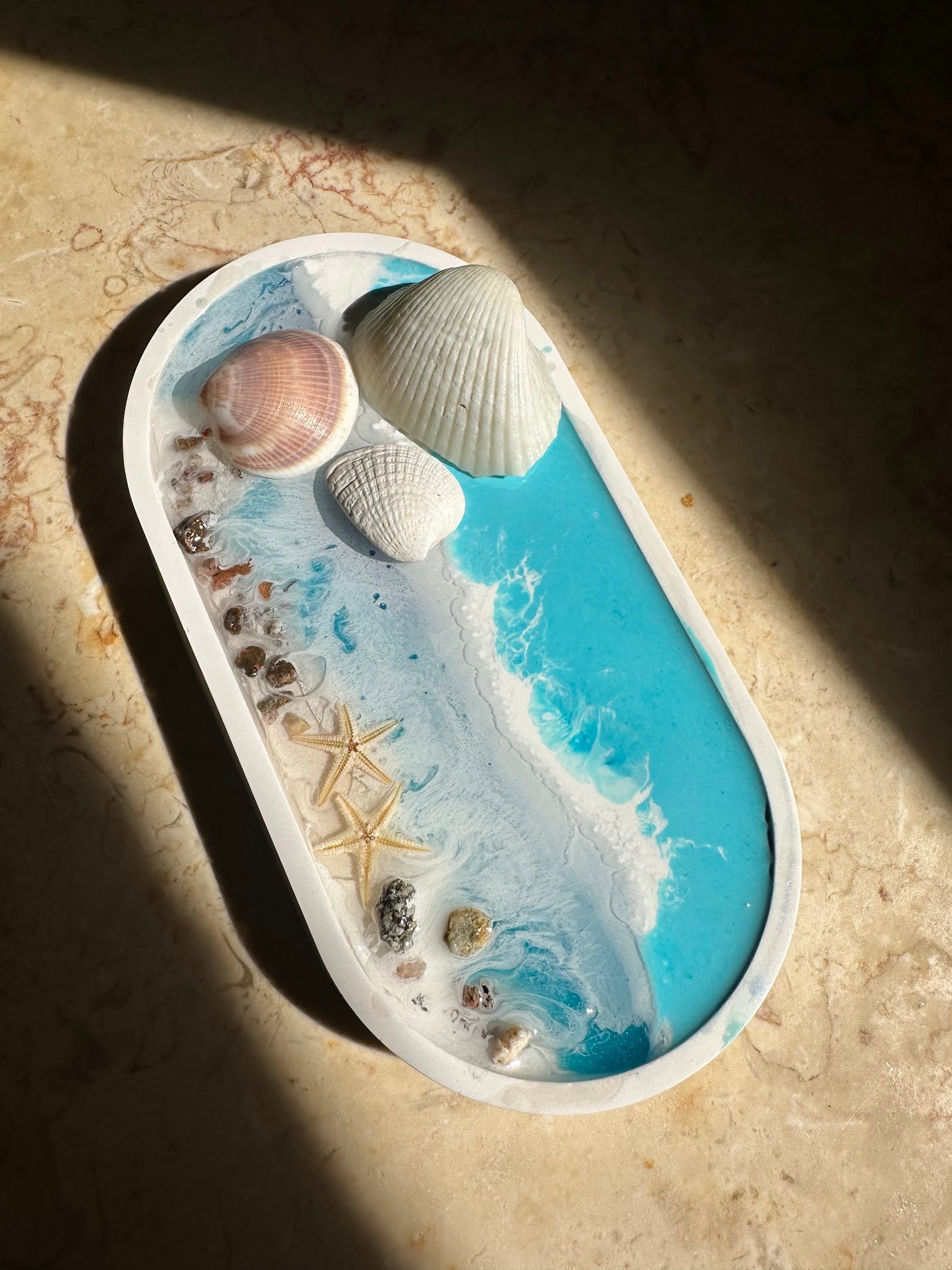 בשילוב צדפים אמיתיים, כוכבי ים ואבנים טבעיות,