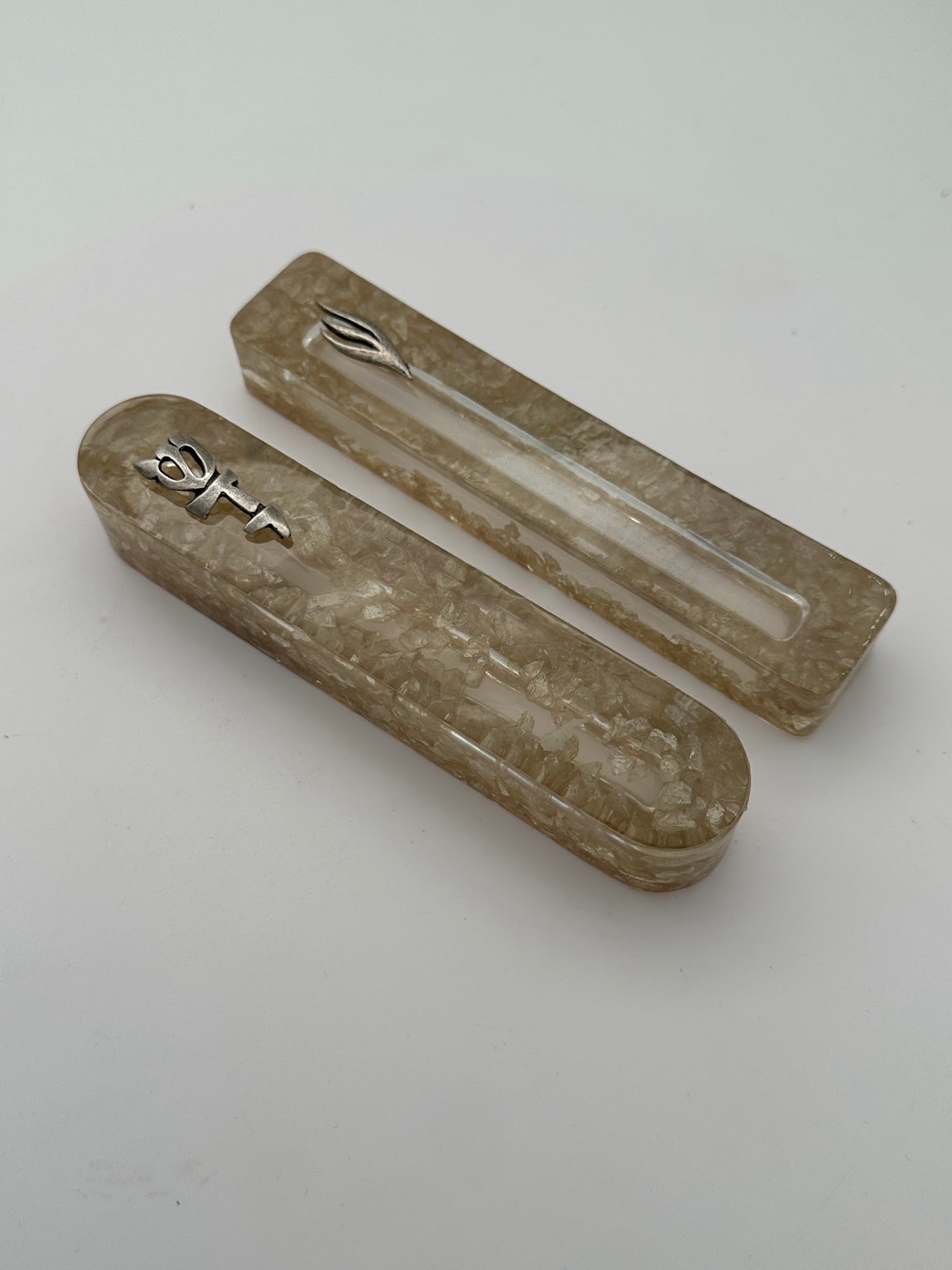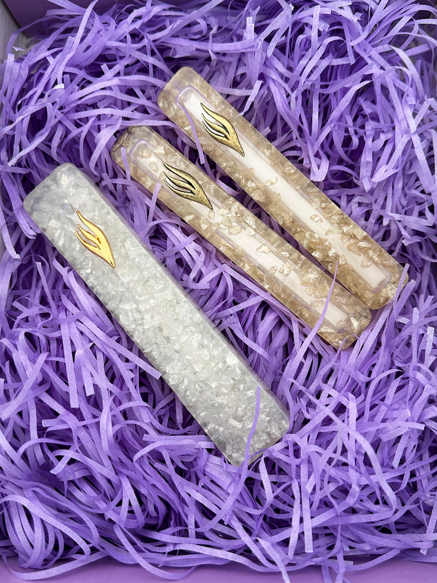 מזוזות אפוקסי עם שברי זכוכית צבעוניים, קריסטלים ועדינות אלגנטית שתאיר כל פתח.