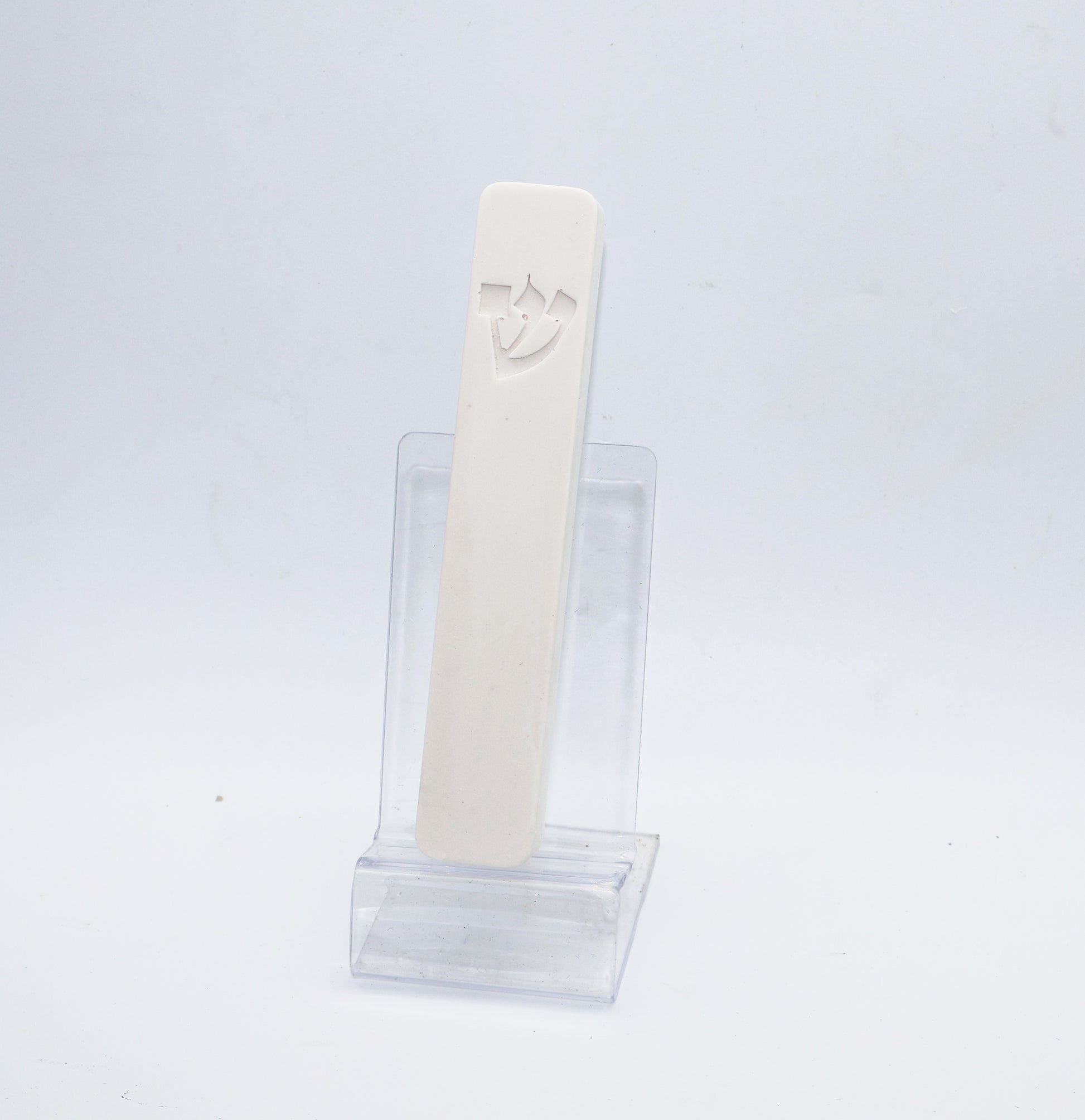 מזוזה מלבן פינות עגולות- ש תנכ"י דגם קרם לבן