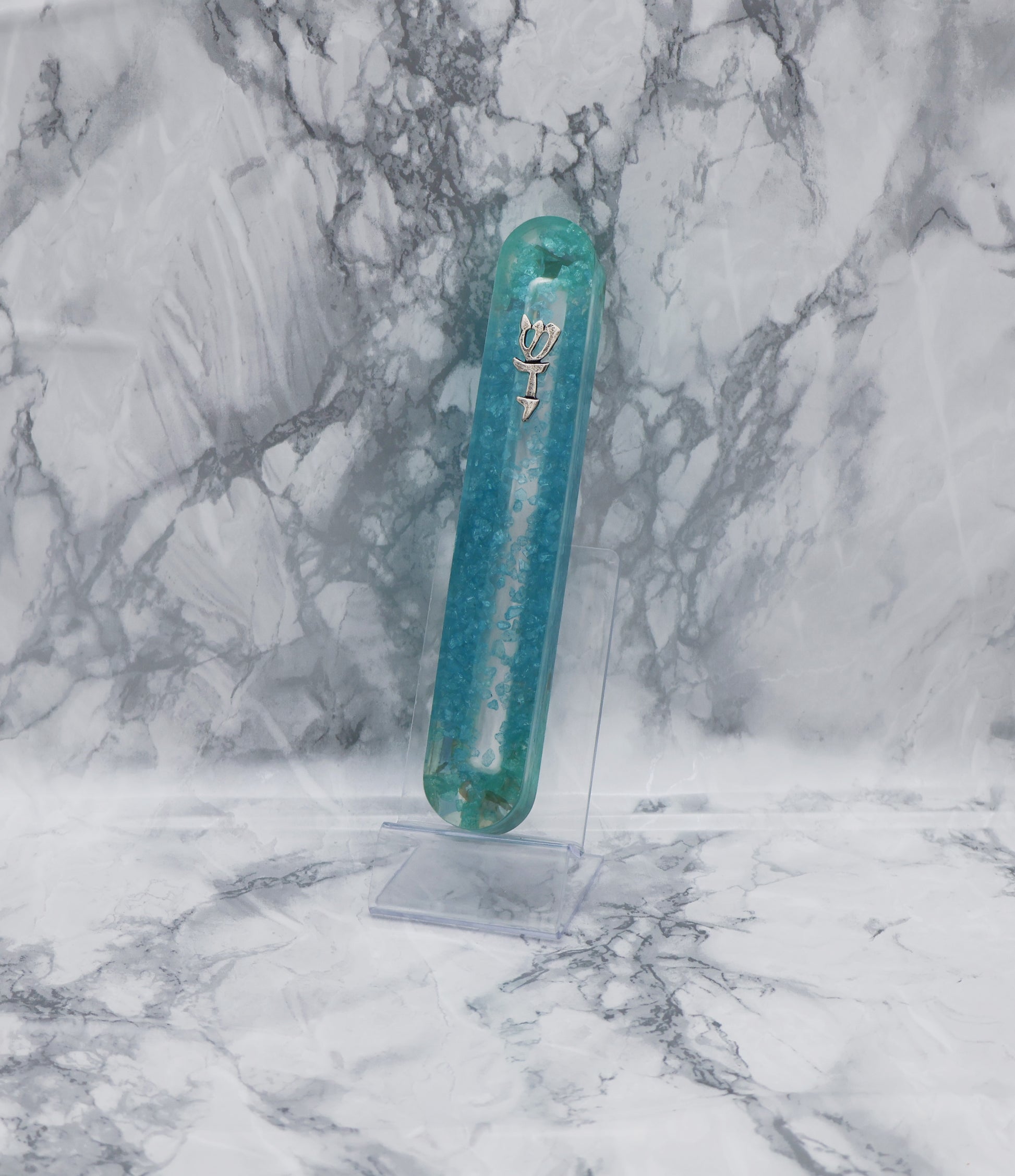 מזוזה עגולה קלף 12 ס"מ שברי זכוכית כחול