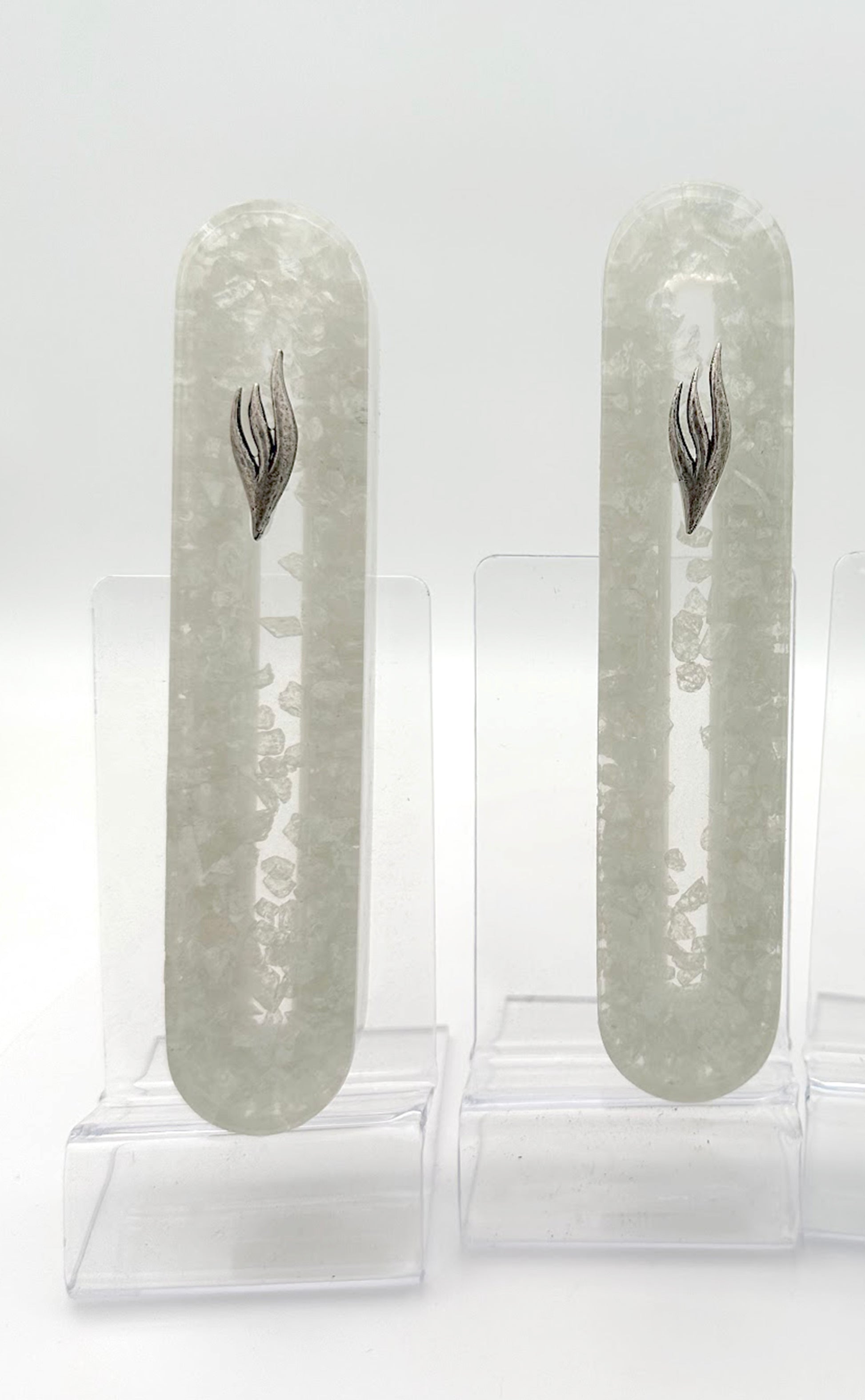 מזוזה עגולה קלף 12 ס"מ שברי זכוכית לבן