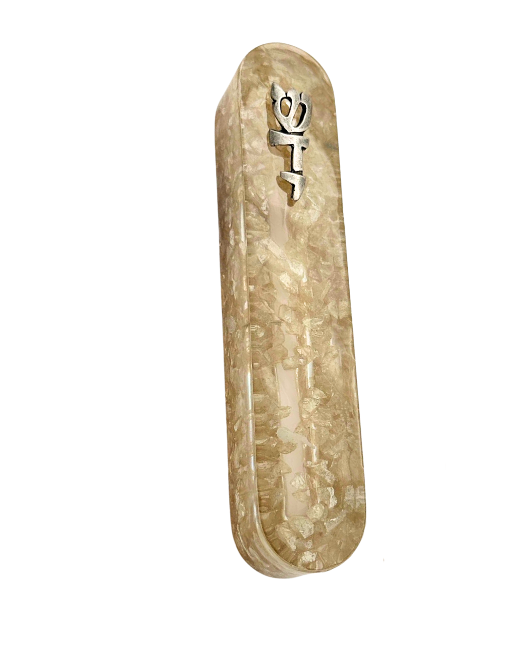 מזוזה עגולה קלף 15 ס"מ שברי זכוכית בז'