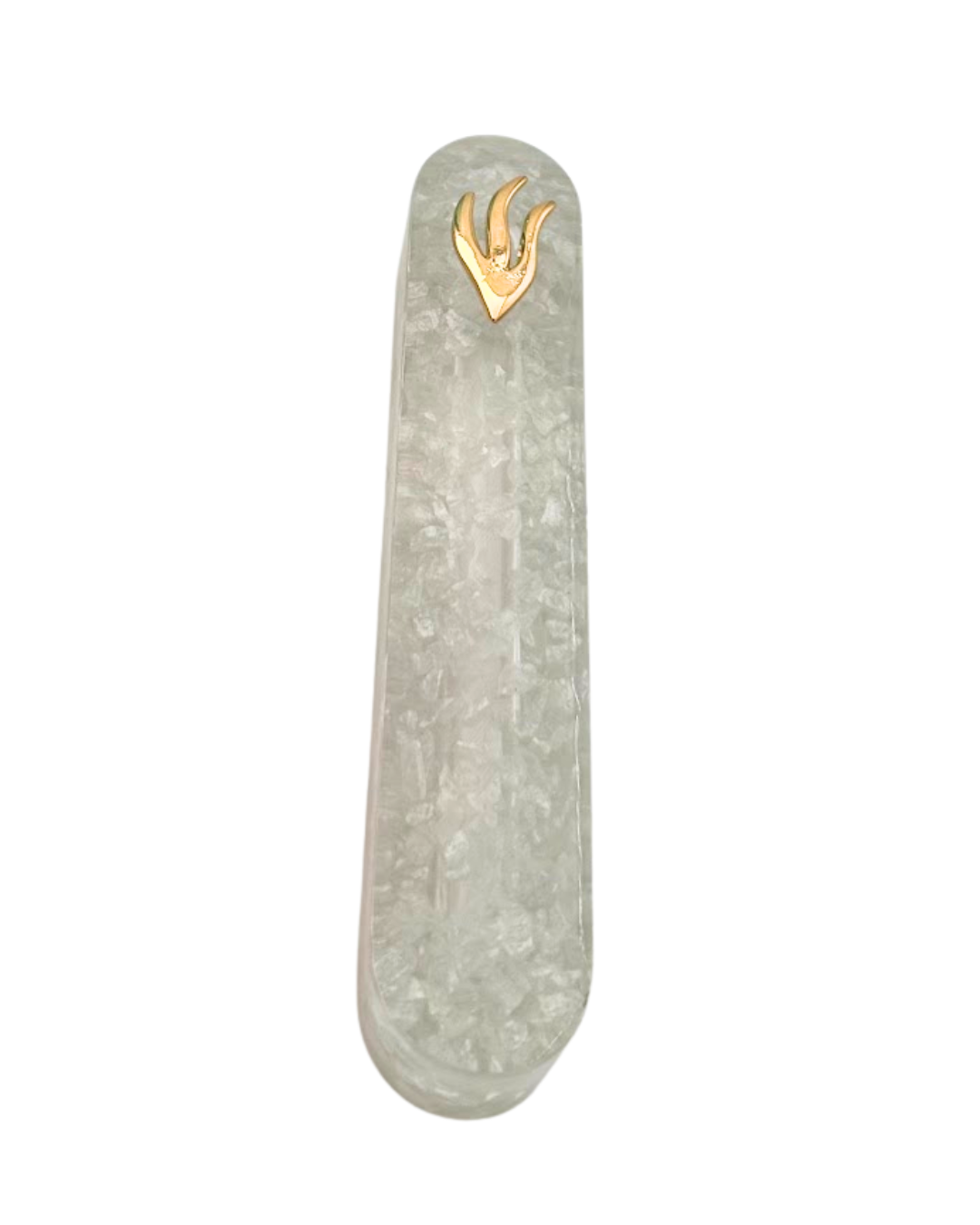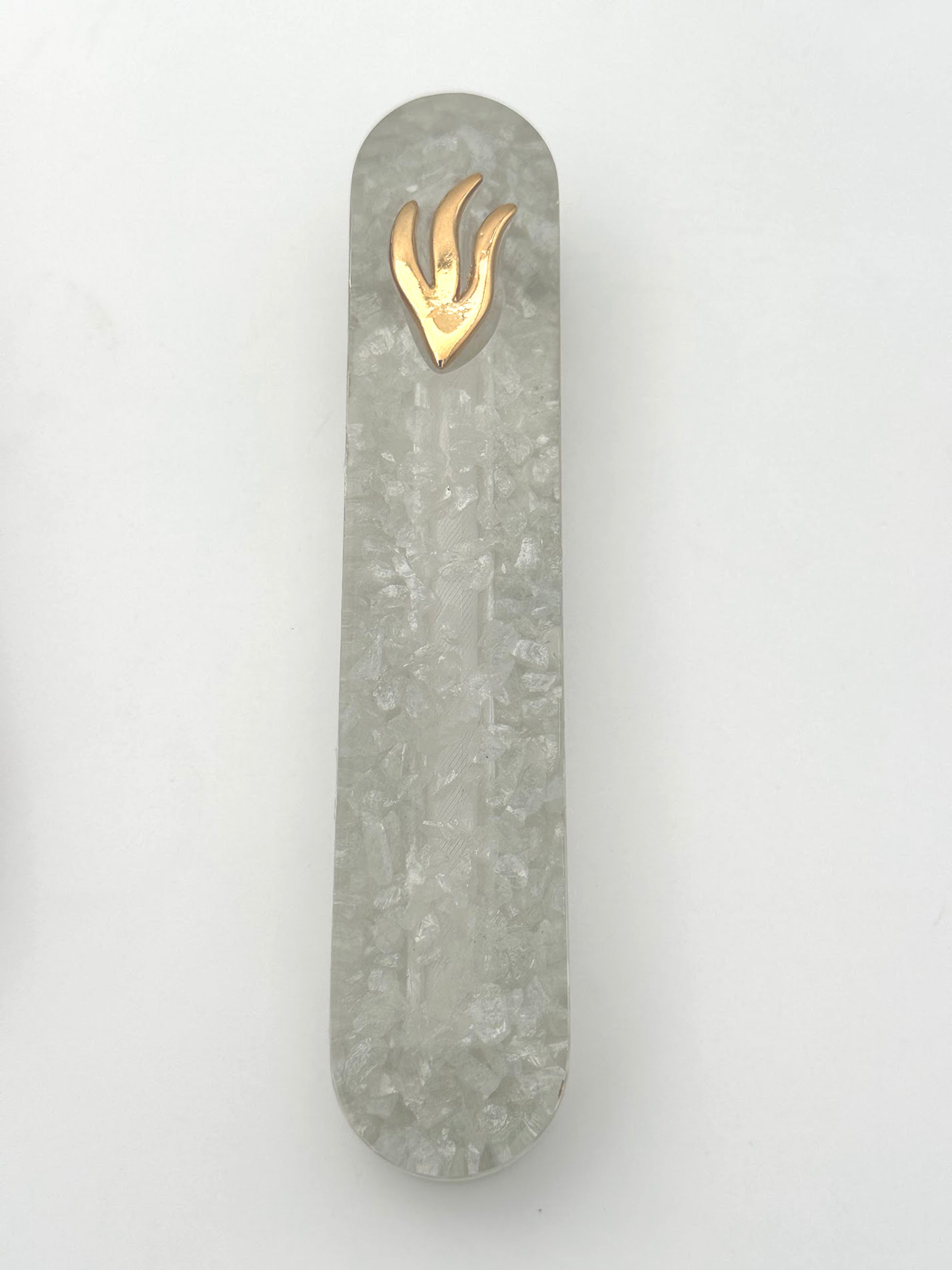 מזוזה עגולה קלף 15 ס"מ שברי זכוכית לבן